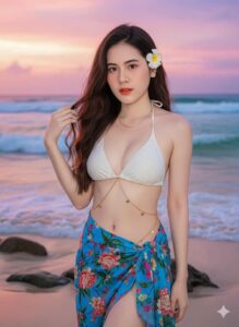 น้องมาในชุดโทนสีและลายผ้าแบบนี้ บอกเลยว่า ชุดบิกีนี สีแดงลายทางเป็นตัวเลือกที่ตัดกับฉากทะเลได้อย่างโดดเด่น สีแดงให้ความรู้สึกร้อนแรงและมั่นใจสุด ๆ พลิกจากสาวหวานเป็นสาวร้อนแรงได้ในทันที ชุดนี้ทำให้เห็นสัดส่วนของร่างกายชัดเจนขึ้น ทำให้น้องดูเพรียวสวยสุด ๆ นอกจากชุดจะสวยแล้ว ลุคนี้น้องปล่อยผมปลิวตามลม เพิ่ม ความเซ็กซี่ แบบธรรมชาติ